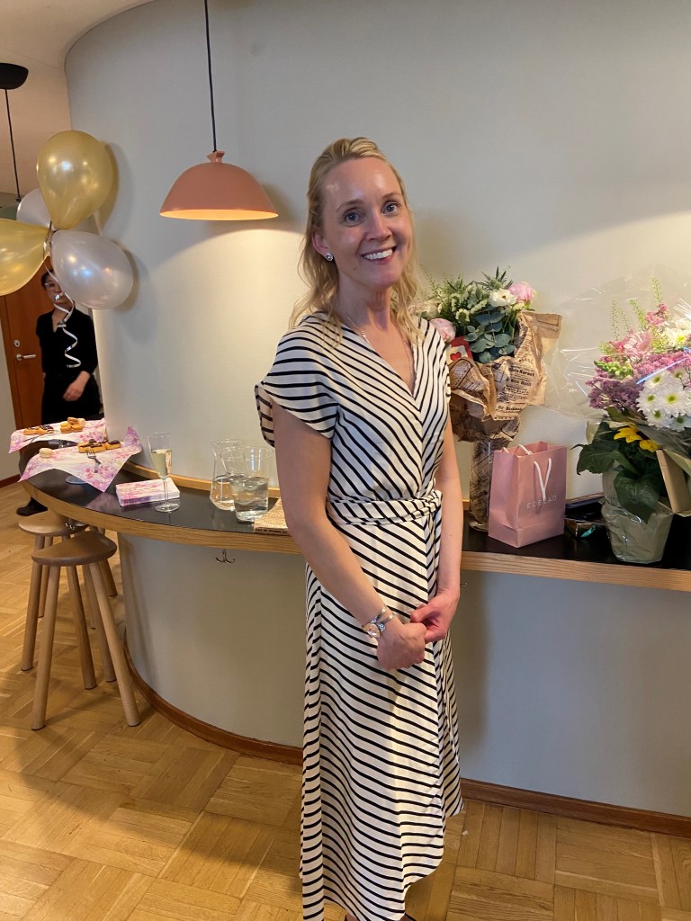 Därefter genomförde Malena för examinator samt kollegor och familj en mycket uppskattad examinationsföreläsning ”skörhet och nutrition hos äldre”.